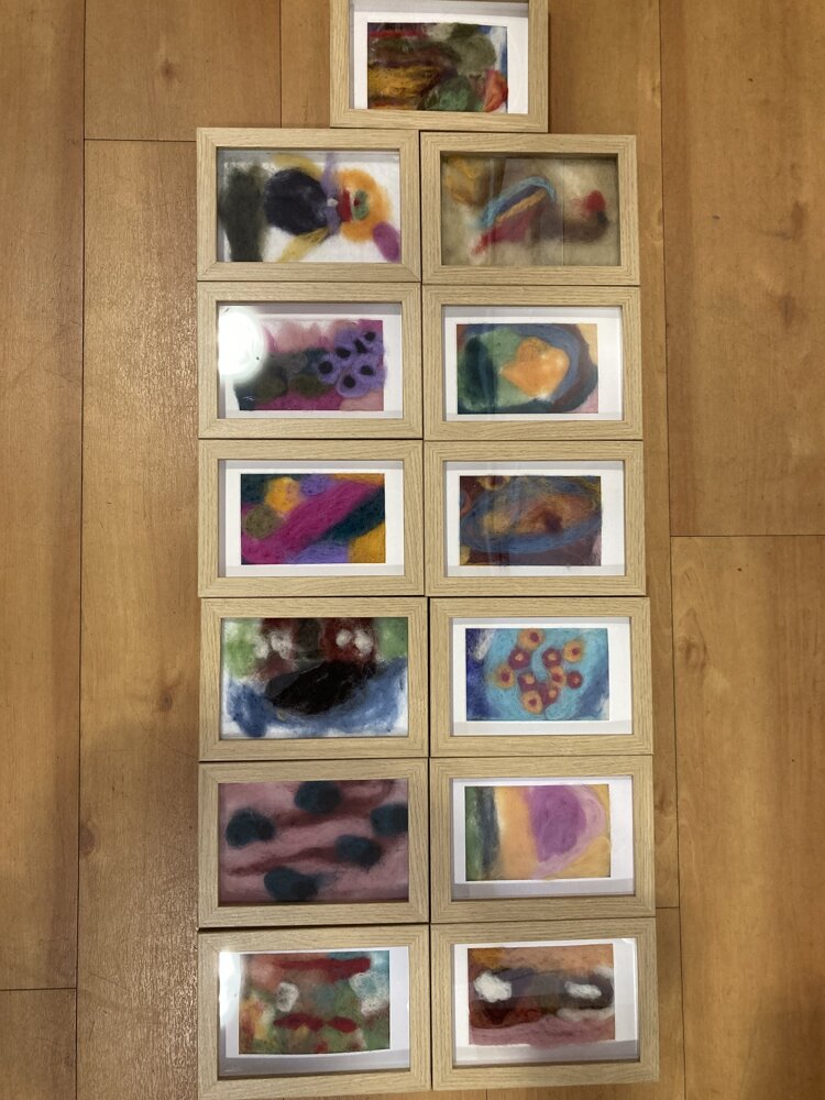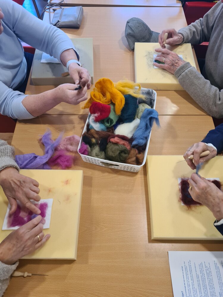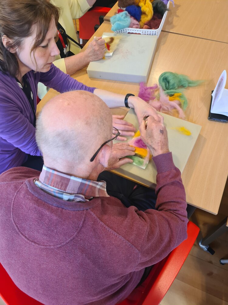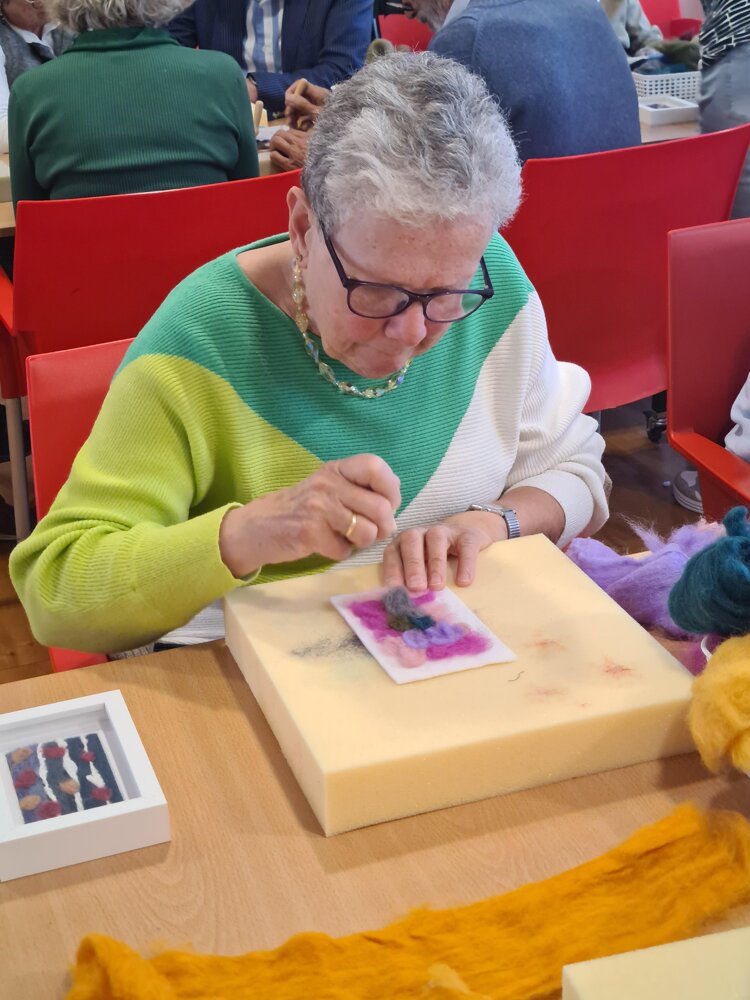 2026-04-24Deze week gingen we Op de koffie bij het Parkinson Café. Samen met de deelnemers keken we naar een kunstwerk van Sylvia Essenberg en hebben we gepraat over wat we ontdekten. Vervolgens gingen maakten we onze eigen kunst met naadvilten. Met prachtige resultaten!
